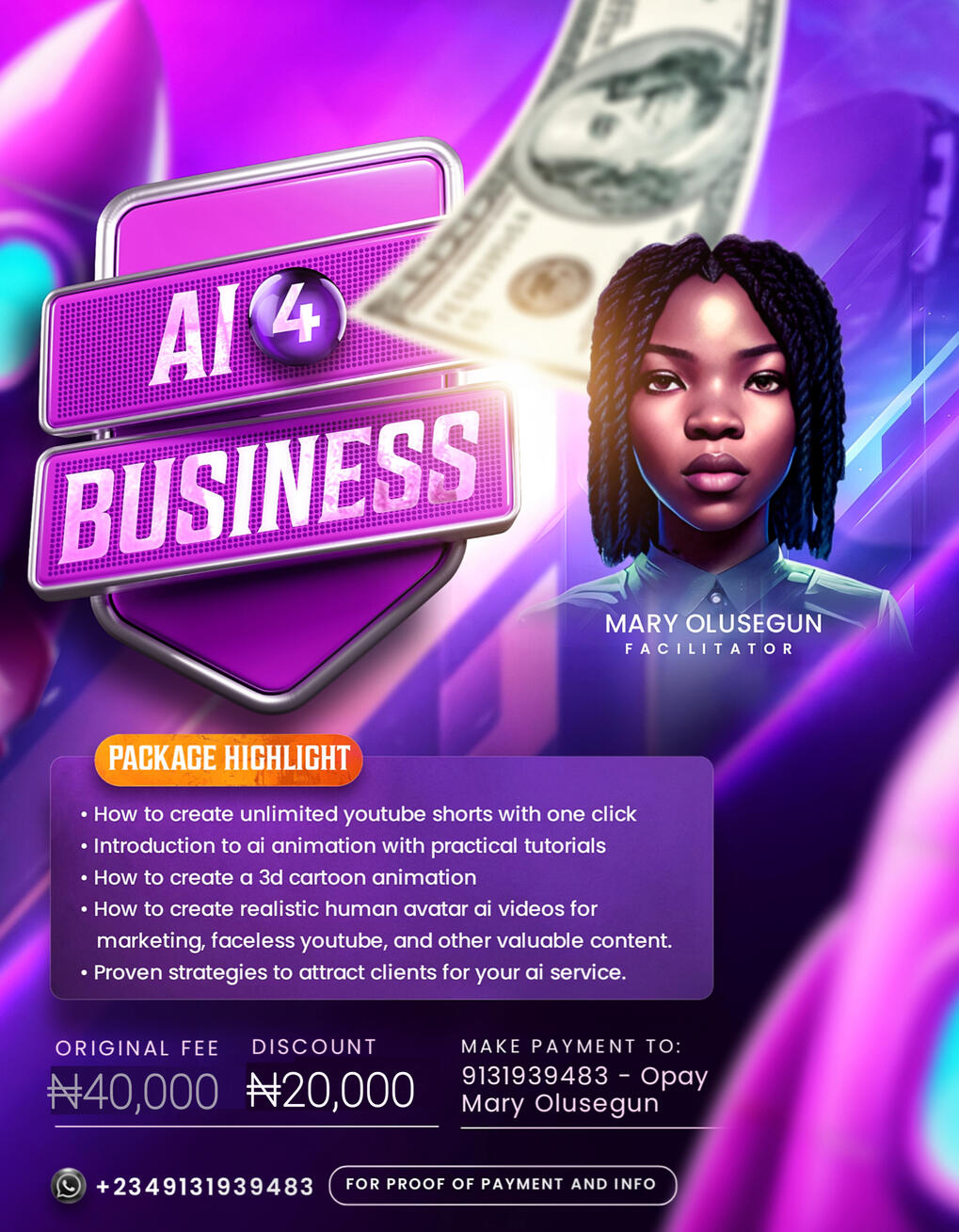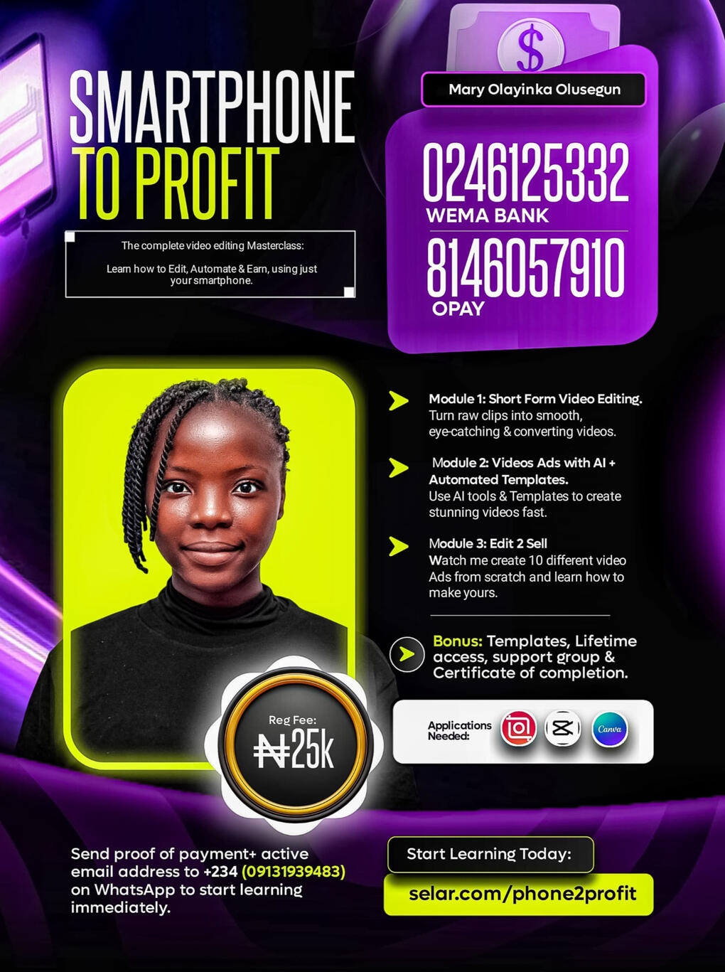 Mary Olusegun.Send Proof of Payment to (+234) 09131939483 on WhatsApp to get started